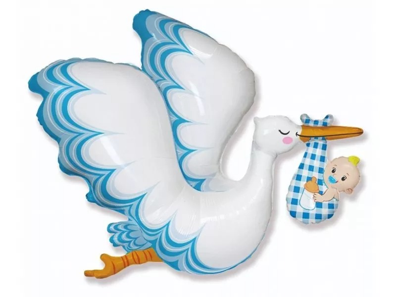 Uroczy balon foliowy z motywem bociana niosącego chłopca, idealny na powitanie noworodka, baby shower lub dekorację przy narodzinach dziecka. Delikatna kolorystyka i sympatyczna grafika nadają całości wyjątkowo ciepły, radosny charakter.