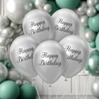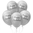 Balony Beauty&Charm Happy Birthday, platynowe, srebrne 12 cali, 5 szt